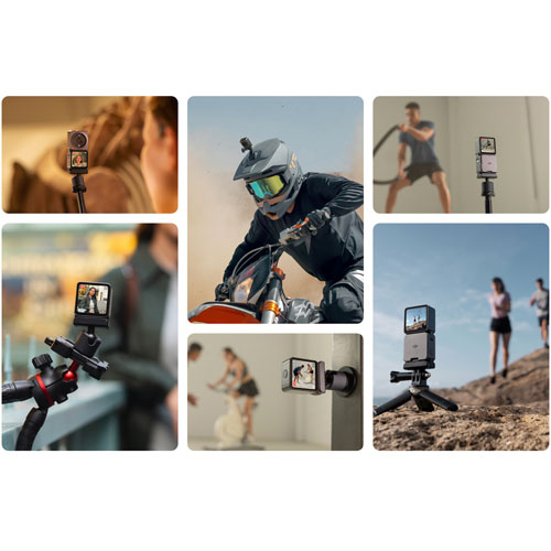 Kit includes DJI Action 2 camera, a front touchscreen module, a magnetic lanyard; magnetic ball-joint adapter mount, magnetic adapter mount, and power cable