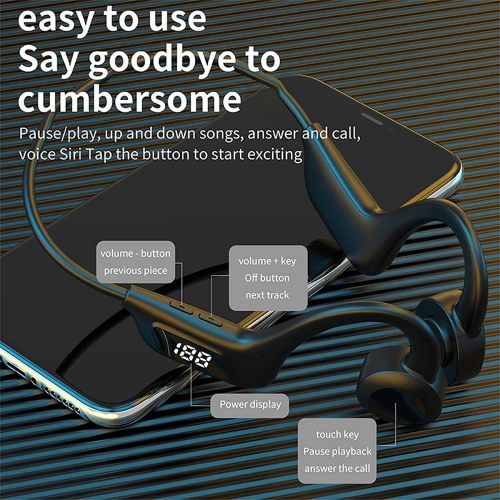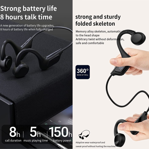 (Bone Conduction Technology): This bone conduction headphones uses advanced bone conduction technology, which transmits audio through the cheekbones instead of air, avoiding long-term air conduction audio damage to the eardrum. Open-Ear Design, long-term wear and still maintain a comfortable feeling. (Comfortable to Wear): The part of this bone conduction earphone that fits the face is rounded and covered with smooth and comfortable silicone. This is our final choice after many trials and experiences with different shapes of the earphone surface. Smooth silicone full-covering round surface makes the wearer feel more comfortable, feel free to wear. (LED Power Display and Lightweight Design): The digital display design of the Over ear bone conduction headphones can check the power of the headset at any time and charge your headset in time. Sport headphones can be adjusted to different angles by 360° bending, the body is only 0.63 ounces light, easy to store and carry, wireless with