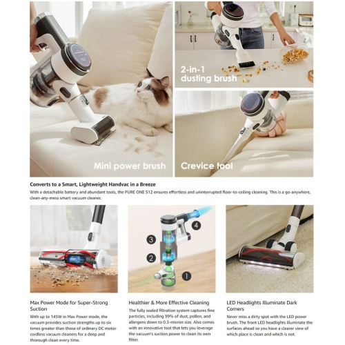 Ultra-high performance 500W motor provides up to 6X more powerful suction compared to ordinary cordless vacuums.