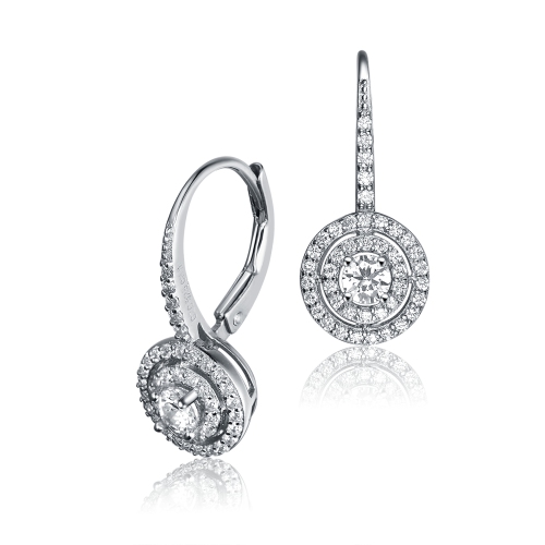 Rozzato Sterling Silver Cubic Zirconia Double Halo Earrings