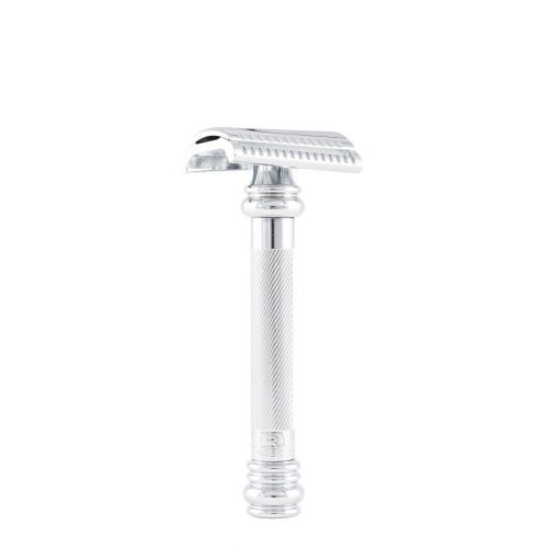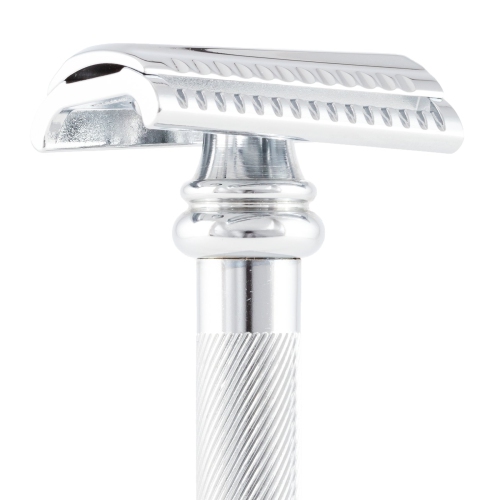 The MERKUR 39C razor is a slant bar razor for wiry and dense beards. Due to its heavyweight and slant bar head, it can handle even the most difficult tasks easily and thoroughly. Its no wonder that fans call it €œthe sledgehammer€. With the barber pole-shaped, ribbed handle, you have it safely and comfortably in your hand. Its no wonder that fans call it €œthe sledgehammer€. With the barber pole-shaped, ribbed handle, you have it safely and comfortably in your hand.