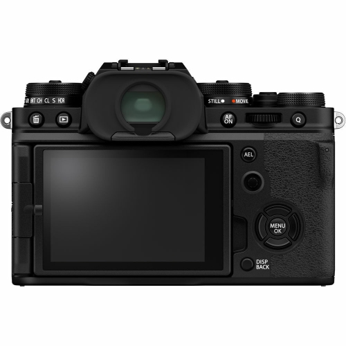 Addressing the needs of multimedia image-makers, the black FUJIFILM X-T4 is a versatile mirrorless camera that blends advanced stills and video capabilities along with enhanced workflow and assistive functionality. Utilizing a proven and well-regarded APS-C-format 26.1MP X-Trans CMOS 4 sensor, the X-T4 is capable of high-resolution recording along with support for DCI/UHD 4K video at 60 fps, Full HD recording up to 240 fps, sensitivity from ISO 160-12800, and continuous shooting up to 15 fps with the mechanical shutter. The BSI design of the sensor affords reduced noise and greater overall clarity and is paired with the X-Processor 4 to achieve fast performance and improved responsiveness. The sensor's design also enables a hybrid autofocus system that combines 425 phase-detection points with a contrast-detection system for quick and accurate AF performance. Additionally, complementing all aspects of image production, the X-T4 also incorporates a 6.5 stop-effective sensor-shift image stabilization system to reduce the appearance of camera shake with almost any mounted lens.