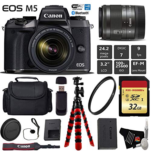 Canon EOS M5 Mirrorless Digital Camera with EF-M 15-45mm is STM Lens + Flexible Tripod + UV Protection Filter + Professi