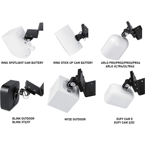 √ IMPROVED AND SECURE VIEWING - Designed to give the best viewing angle to your Arlo, Blink, Ring, Wyze, and Eufy Cameras. By mounting your camera on the door, you can easily monitor who is at your doorstep. √ FLEXIBLE PLACEMENT - The door mount can be adjusted easily with the 360-degree swivel and 180-degree tilt, allowing you to place your security camera flexibly. √ THOUGHTFUL DESIGN - It features a strong and secure angle lock that will enable your camera to remain in the same position. It can be moved from one place to another without tools or wall damage. √ EASY INSTALLATION - Stick the adhesive sticker at the back of the steel plate and stick the plate at the door edge. Place the mount at the top of your door and screw in the mount. Make sure the screws are facing the steel plate to ensure no damage to the door. Two sets of screws can be switched for different door thickness (1.18-2.36in/3-6cm) √ PACKAGE INCLUDES - 1 x Door Mount, 1 x Steel Plate, 2 x Adhesive Sticker, 1 x