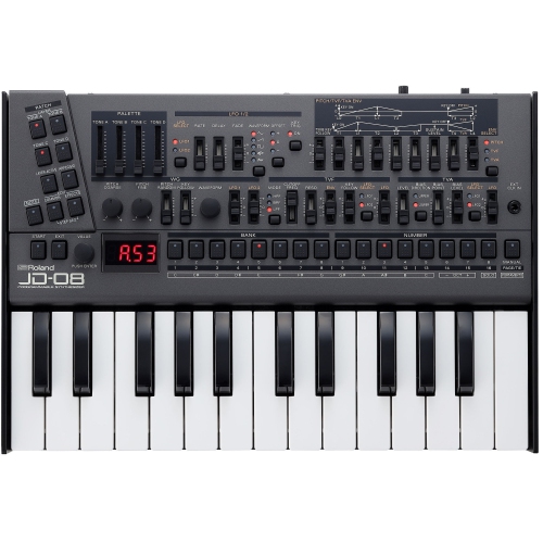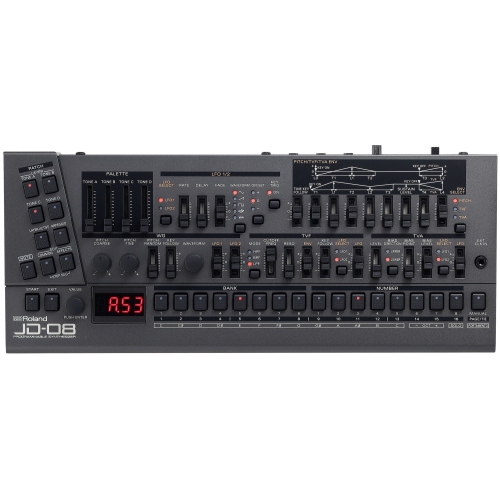 With its retro workflow, evocative sounds, and powerful effects, the JD-800 was a favourite for top electronic music producers through the '90s and beyond. Combining the original JD-800 waveforms with advanced modeling techniques, the JD-08 delivers the exquisite hands-on sound design of the original, along with hugely expanded polyphony, a two-part polyphonic sequencer, and other modern updates.