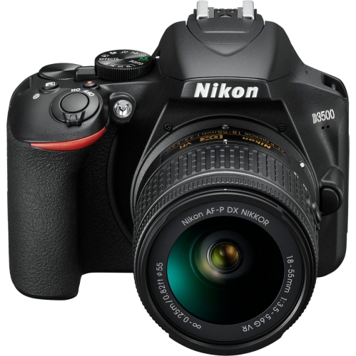 Fast, responsive, simple to use, the new Nikon D3500 is here! This lightweight DSLR is perfect for beginners and photographers new to DSLRs. This great camera has 24.2 megapixels with 5 fps continuous shooting at full HD 1080p resolution and ISO’s from 100 to 25,600. The D3500’s Auto mode delivers amazing results in nearly any situation, and if you want to learn while you shoot just turn on the Guide mode which gives you simple on-screen guidance. Nikon’s renowned EXPEED image processing system fine-tunes settings for each shot, and with a sensor 15 times larger than typical smartphones you get clearer, sharper photos with richer details. With the D3500’s lightweight, balanced feel, rubberized grip and great battery life you can comfortable shoot all day long. You can also download the SnapBridge app on your smartphone/tablet to easily share your photos with friends and family as well as remotely trigger the camera to take pictures! The overall size allows it to be discrete and the durable construction means this camera is perfect for the day tripper. Capture the MomentYou dont need to be a photographer to know a great photo when you see one. And you dont need to be a photographer to take a great photo—you just need the D3500. Its as easy to use as a point-and-shoot, but it takes beautiful DSLR photos and videos that get noticed. It feels outstanding in your hands, sturdy and balanced with controls where you want them. Its compact, durable and versatile, ideal for travel. And it works seamlessly with compatible smartphones, making it easier than ever to share your great photos. Even if youve never picked up a DSLR camera, you can take beautiful pictures with D3500.Shoot comfortably