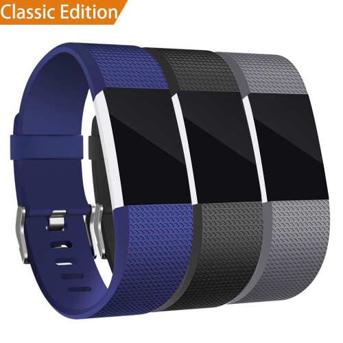 Fitbit Charge 2 Bands, Classic Bracelet Adjustable Replacement band TPU Strap Sport Watch Band Metal Clasp,LARGE,3 Pack