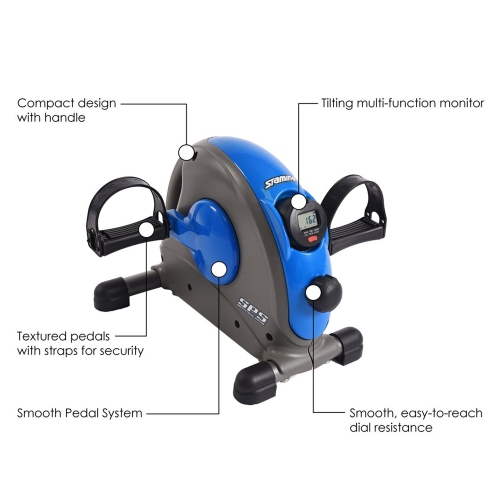 When you're beginning your fitness journey, there's no better way to start than in the comfort of your home or at work in your cubicle. With the upgraded blue Stamina Mini Exercise Bike, you can do just that. In fact, you can use the mini bike to work your lower or upper body. To concentrate on your lower body, simply set the mini bike on the ground in front of the couch or under a table or desk and begin pedaling. For an upper-body workout, set the mini bike on a table, grip the pedals with your hands and begin rotating.