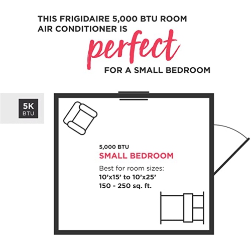 With 5,000 BTU and 115-Volt this Window-Mounted Mini-Compact Air Conditioner is perfect for cooling a room up to 150 sq. ft. It quickly cools the room on hot days and the quiet operation keeps you cool without keeping you awake. This unit features mechanical rotary controls and top, full-width, 2-way air direction control. Capture dust from the air and keep your air conditioner working efficiently with our easy-to-clean washable filter. Low power start-up conserves energy and saves you money plus, effortless restart automatically resumes operating at its previous settings when power is restored.