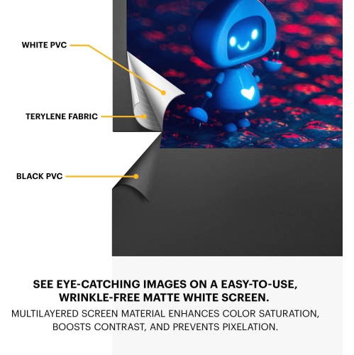 With this easy-to-use, convenient projector screen and stand, you just need to set up the feet, open the case, and pull out your screen. The projection screen is super easy to set up. Enjoy using this useful, indoor/outdoor projector screen in the comfort of your home or outside under the night sky. The matte white screen controls ambient lighting and prevents pixelation so you always have a clear display. The black masking border enhances contrast while the black backing prevents light penetration. The 160° viewing angle creates clear, wide images making this screen great for weddings, conferences, parties, and other events with big crowds. Enjoy beautiful, colorful cinema on this high-quality screen.