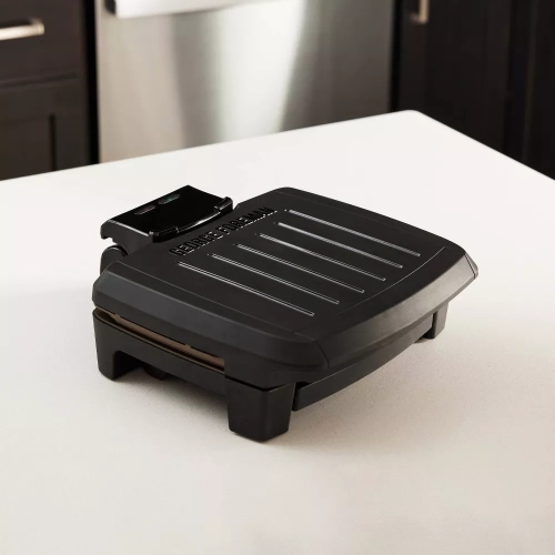 Say goodbye to greasy grills. The GEORGE FOREMAN® Submersible™ Grill series eliminates the hassle of complicated clean-up. Remove the control panel, and place all remaining components in the dishwasher or sink for a complete clean. With a 30% faster preheat*, mouth-watering meals are made quick and easy. Allows up to 4 servings, so you can conveniently cook for the whole family! Coating: Advanced George Tough™ Color: Black with Bronze Colored Plates Dishwasher-Safe: Yes Drip Tray: Yes Temperature Indicator Light: Yes Variable Temperature Control: No Warranty: 3-Year Limited Dishwasher Safe Safe to clean in the dishwasher.