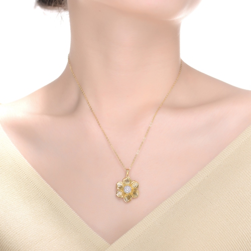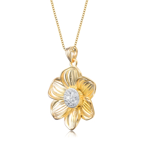 Rozzato Yellow Gold Plated Flower Shaped White Cubic Zirconia Pendant Necklace