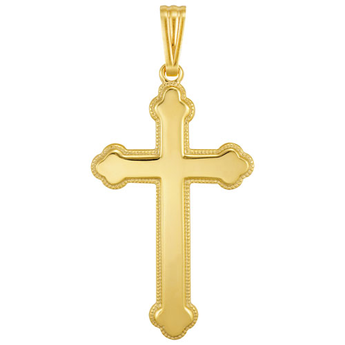 Cross-shaped pendant with clover ends has a timeless appeal