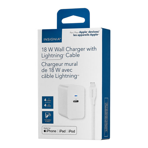 Insignia 18W USB-C Wall Charger with 1.2m USB-C to Lightning Cable - White