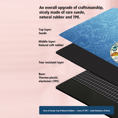 ✅ [Ultra-Soft and Elastic] The suede top is ultra-soft and skin-friendly. It softly caring your joints. The natural tree rubber and TPE base are elastic. This mat rebounds softly and protects your knees and elbows during the workouts.