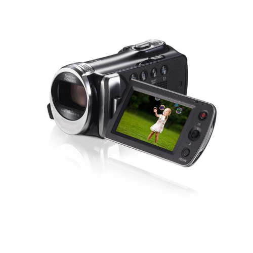 The Samsung HMX-F90 HD Camcorder records up to 720p video at 30 fps and features a Schneider lens that provides 52x optical zoom range to get you closer to the action. The lens also has a maximum aperture of f/1.8 to benefit shooting in dimly light environments. In addition to 720p video, the camcorder can also capture 1.9MP still photos onto SD/SDHC/SDXC memory cards. Users can monitor and play back recorded files on the 2.7" articulated LCD panel, or use the micro HDMI output and an optional HDMI cable to connect to your HDTV for large screen playback of your footage with family and friends.