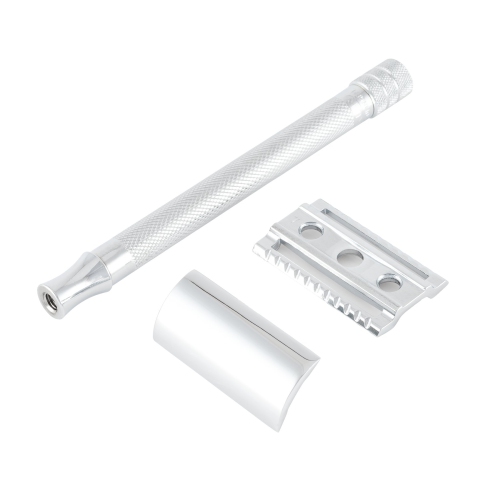 Material: Brass handle, die-casted zinc razor head, galvanized surfaces, bright chrome-plated