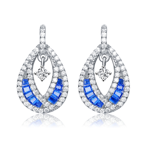 Rozzato Sterling Silver Sapphire Cubic Zirconia Pear Drop Earrings