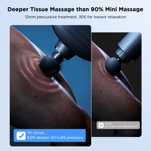 ?MINI BUT POWERFUL: 40W high-torque brushless motor, speed up to 3200 RPM, excellent performance, can provide 40 lbs of impact, amplitude up to 12 mm, activate muscles for 30 seconds, relieve muscle pain for 2 minutes, more than 99 on the market % mini massage gun.