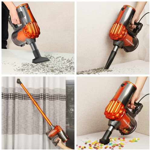 User-friendly: Comes with an easy-to-clean dustbin, advanced cyclone HEPA filtration system, effectively spins dust away from motor and keeps the powerful suction, good ideal for home with pets and children.