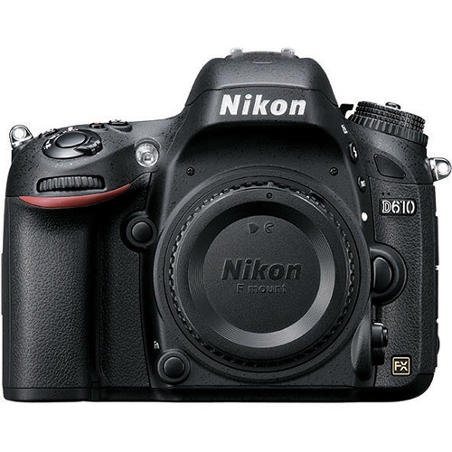 The Nikon D610 DSLR Camera features a full-frame, FX-format 24.3 megapixel CMOS sensor and EXPEED 3 image processor to producehigh-resolution still imagery and full HD 1080p video with notable image detail and low-light sensitivity to an expandable ISO 25600. Thesensor and processor work together to enable high image quality with a wide dynamic range and high signal-to-noise ratio that produces bothsmooth color and tonal gradations with low noise levels for enhanced overall clarity. These two technologies also combine to provide awealth of speed throughout the D610, including a continuous shooting rate of 6 fps and a quiet shooting mode that allows the camera torecord sequential imagery without the mirror raising or lowering.A Multi-CAM 4800 AF sensor is integrated into the cameras design and produces fast autofocus speeds using a 39-point array to preciselyacquire focus in a wide array of lighting conditions. Seven of the central AF points are compatible with f/8 or faster lenses, whichgreatly enhances the autofocus performance with longer, telephoto lenses used in combination with teleconverters. When recording movies orworking in live view, a contrast-detection focusing method works to continuously deliver accurate focus with subject-tracking andface-detection capabilities using the full-time servo mode.Full HD 1080p video is supported up to 30 fps in the MPEG-4 AVC/H.264 format and manual control over the ISO, shutter speed, and apertureis possible for optimized control over the look and feel of movies. Uncompressed recording is possible with an optional external recorderconnected via the HDMI port and, additionally, both headphone and microphone ports are available for refined control over recorded sound.Extending the D610s connectivity, an accessory terminal is compatible with the optional WU-1b Wireless Mobile Adapter and GP-1A GPS Unitfor wireless image sharing, remote camera control, and geotagging capabilities.24.3MP FX-Format Sensor and EXPEED 3 Image Processor