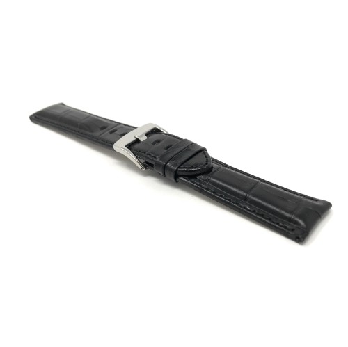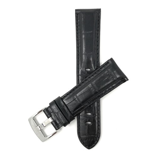 •22mm wide, Mens' Alligator Style Genuine Leather Watch Band Strap, Glossy Finish