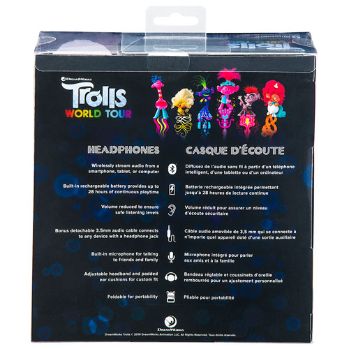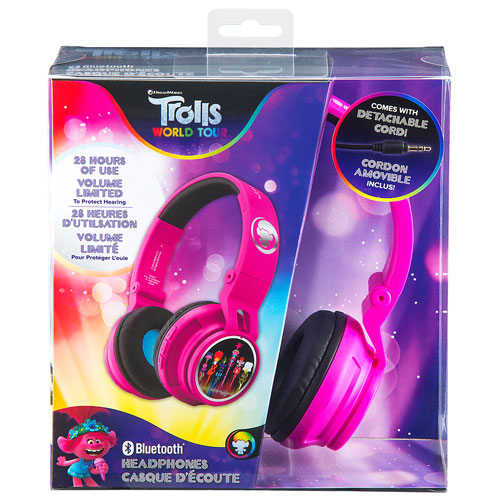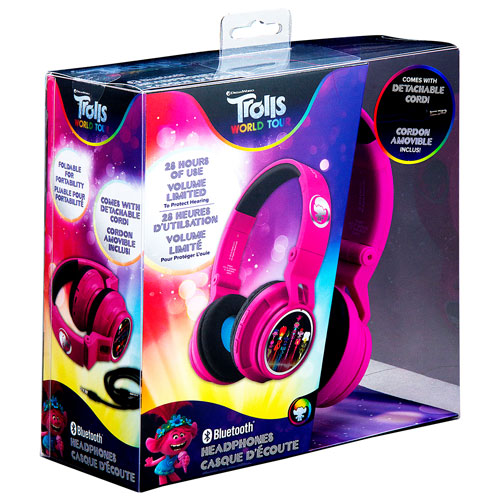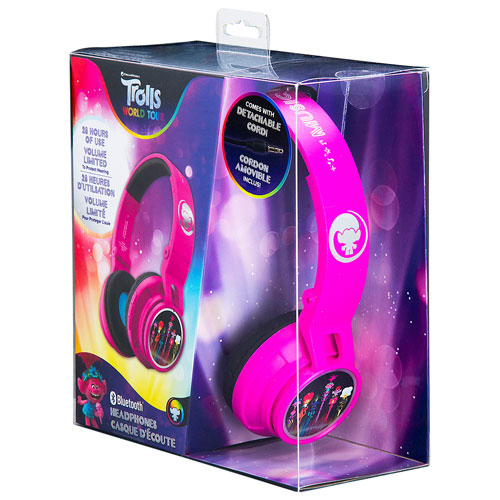 KIDdesigns Trolls Over-Ear Noise Cancelling Bluetooth Kids Headphones - Purple