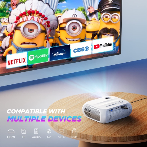 *Unique Shape: All corners and edges of the projector are tastefully rounded, and the high-definition lens is neatly combined with the ventilation holes on the sides of the housing. The lens cover is a slide door design which prevents the screen from being dirty and accidentally scratched, and protects the lens when it is not in use. This mini portable projector only 3lb weight that you can carry it to anywhere.