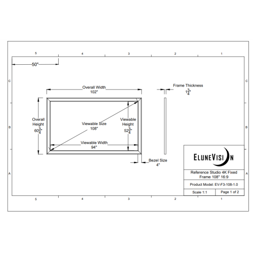 EluneVision Reference Studio 4K 108'' Fixed Frame 16:9 Projector Screen