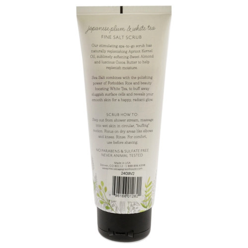 Small granule Sea Salt combined with the polishing power of Forbidden Rice and beauty booster White Tea to buff away sluggish surface cells, revealing super smooth skin for a happy, radiant glow.
