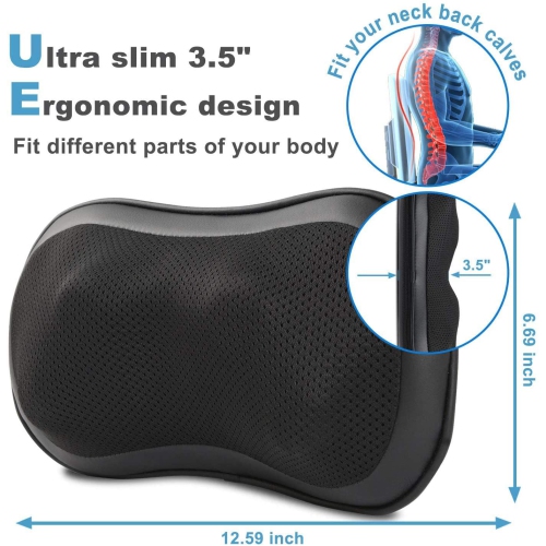 •Heated Pillow Massager with Delicate Design: An upgraded elastic back Velcro allows you to adjust and secure it to any size chair to massage your back. A multifunctional cover for the back massager is designed to achieve a softer massage after a long-time massage. A 15-minute auto shut-off timer is included with safety in mind.