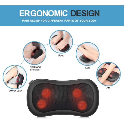 •Shiatsu Back Massager: With 4 powerful deep-kneading 3D massage nodes and reinforced heating function, this heated shiatsu pillow massager helps to relax overused and tight muscles. Please press the power button 3 seconds at least to start the device.