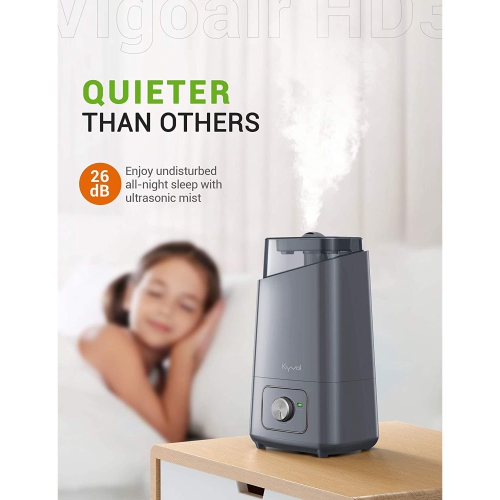 Kyvol HD3 Humidifier (Grey), 4.5L Cool Mist Humidifiers, 26dB Quiet Ultrasonic Humidifiers, BPA-Free, Auto Shut-off, 360° Nozzle, Ideal for Plants, Home, Office, Baby