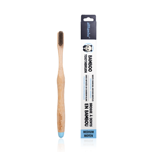 Made from organically grown bamboo, our eco-friendly sustainable bamboo toothbrushes are licensed by Health Canada.The BPA-free, vegan, bristles are infused with premium activated white charcoal (Binchotan from Japan) and have powerful antibacterial properties that cleans, whitens and brightens your teeth naturally and guarantees you great oral hygiene. Each toothbrush is individually sealed in compostable PLA wrapper inside our box packaging as an additional safety and hygiene measure.Stylish contoured smooth handle provides maximum grip comfort, the head is favourably sized and designed for optimal tooth coverage.
