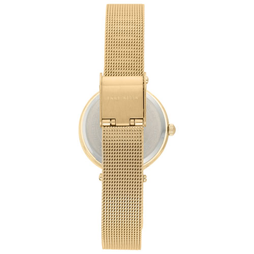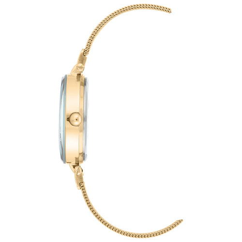 Gold-tone mesh bracelet closes with a jewelry clasp for a secure fit