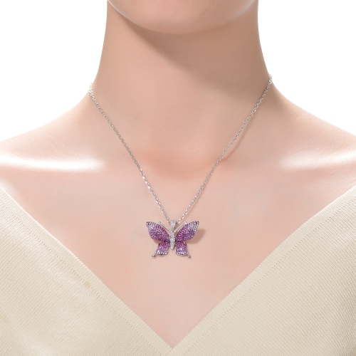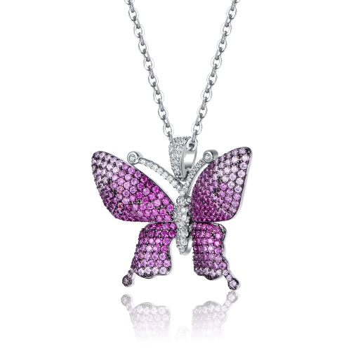 Rozzato Sterling Silver With Rhodium And Black Plated Long Lasting Butterfly Pendant Necklace