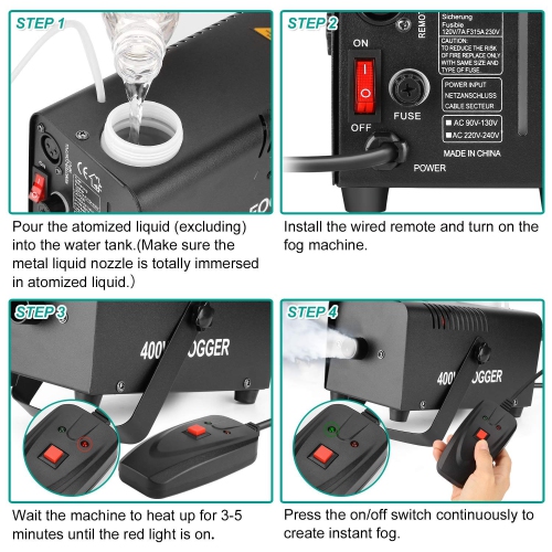 ✔ EASY TO USE: The wattage of the machine is 400, together with a wired remote control. What’s more, you can directly control the fog machine with this built-in power cord, which is definitely turned out to be way convenient and practical.