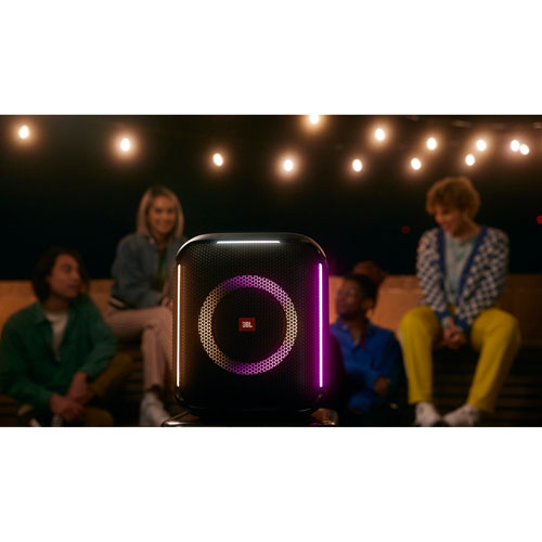 100-watt portable speaker with a 1.75-inch tweeter, 5.25-inch subwoofer, and JBL Original Pro Sound brings your music to life