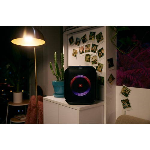 Dynamic light show synchs a ring light and strobe effect to the music and is completely customizable through the JBL PartyBox app
