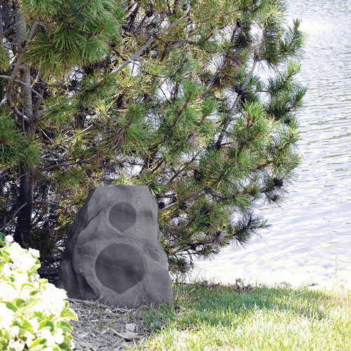 Durable UV-resistant enclosure with granite rock finish allows the speaker to blend in with your outdoor decor all season long