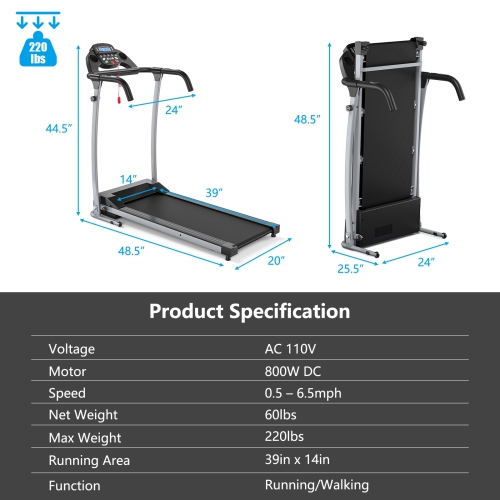 ● Heavy-duty Construction: Made with high-quality steel and has 220 lbs weight capacity. With its 38.2 " L x 14" running belt, it gives a high-performance exercise.