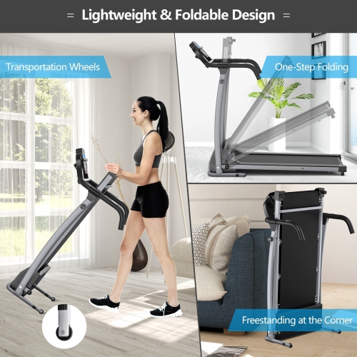 If you have little time to go to the gym, go running, or are prevented from running due to bad weather, this is the solution. With this treadmill, your gymnasium can help you stay in shape much easier. The treadmill features a multi-functional display (heart rate / speed / distance / time / calories / scan) so you can track your progress. The treadmill can be folded manually for an easy move.