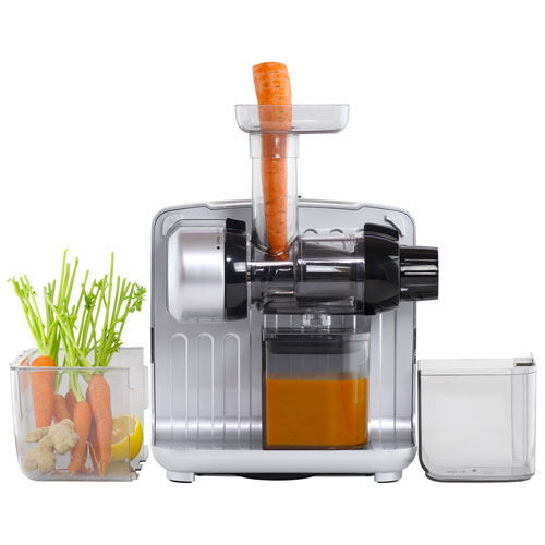 Three-stage auger presses and squeezes ingredients to obtain the maximum amount of great-tasting juice