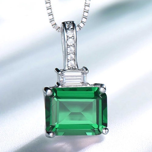 • Features Cushion Nano Emeralds with AAA Clarity and Green Color and Round Cubic Zirconias with AAAAA Clarity White Color which are