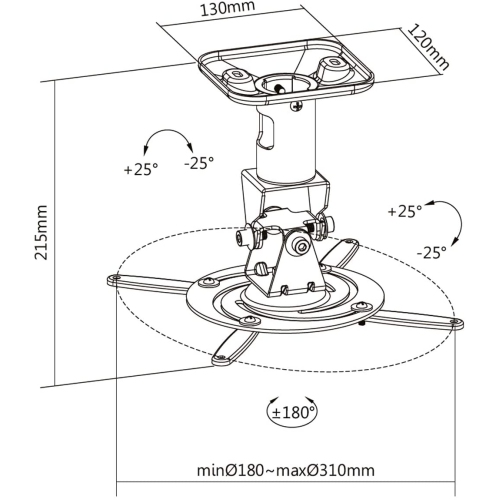 90 degree continuous adjustable tilt (up & down) for both ceiling and wall mount