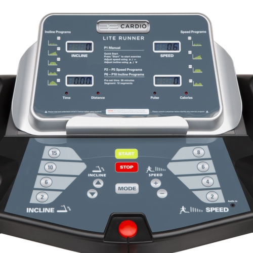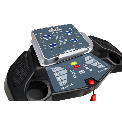 The Lite Runner has 10 different pre-set programs, as well as one-touch speed and one-touch incline elevation quick touch buttons. Feedback on the display includes; Time, Speed, Elevation, Distance, Calories and Heart Rate