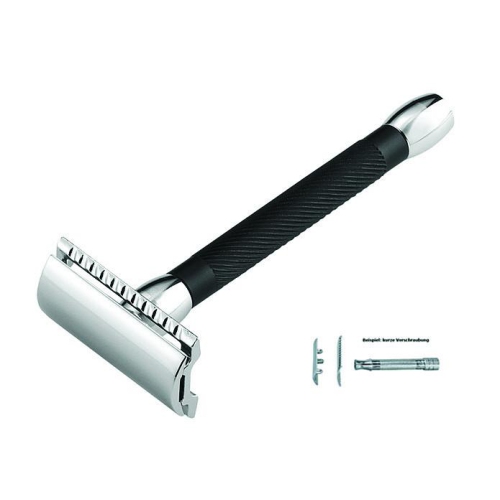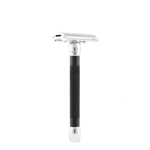 The MERKUR 20C razor is one of the gentlemen in our array. Designed with black aluminum and bright chrome, this safety razor impresses with its elegant appearance. The long handle makes it comfortable while the weight gives you the control to contour your beard effortlessly. With its closed comb and large blade gap, it is gentle to shave and easy to use.