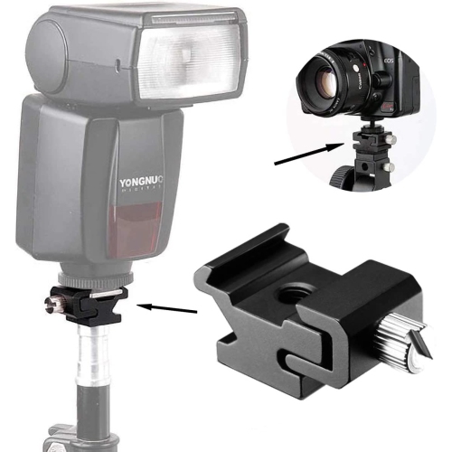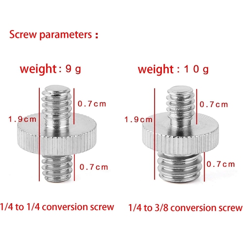 Material metal aluminum alloy, black anodized metal structure, has higher durability. Universal 1/4-inch tripod screw metal refrigeration shoe, can mount the flash on the bracket. Works on Nikon and Canon flashes, displays, ring lights, trigger devices, microphones, and a wide range of camera accessories. Precision made (1/4' to 1/4')(1/4' to 3/8')(male to male) metal tripod screws,international standard. This is an universal adapter spigot stud for the Photography studio use.International Standard universal camera 1/4' 3/8'screw fits for any dslr slr camera tripod monopod light stand etc,. that is with 1/4' 3/8'hole.