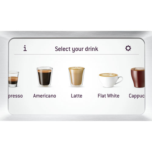 Colour touchscreen makes it incredibly easy to navigate the menu that includes an espresso, long black, latte, flat white, or cappuccino