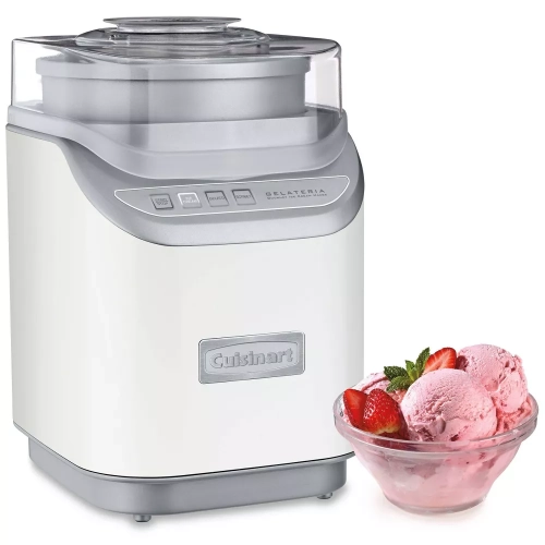 Our Cool Creations Ice Cream Maker has all your frozen delights covered – ice cream, gelato, frozen yoghurt, and sorbet. Making any family favorite couldn’t be simpler thanks to the one-button operation for ice cream, gelato, and sorbet and auto shutoff to make entertaining easy. The innovative paddle speeds the processing time so that you can be enjoying two quarts of frozen treats faster. Whips up two quarts of frosty fun in 20 minutes! Brand Overview Savor the Good Life®. Cuisinart’s Mission as a Brand is to develop and market, innovative, high-end kitchen products that enable consumers to quickly and easily provide their family with home cooked foods from a cup of coffee to an extravagant holiday meal.